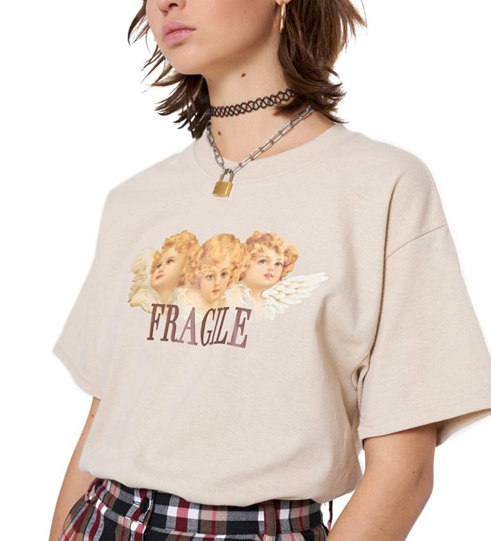 Buy Fyuof Women's Short Sleeve Casual fragile angel shirt