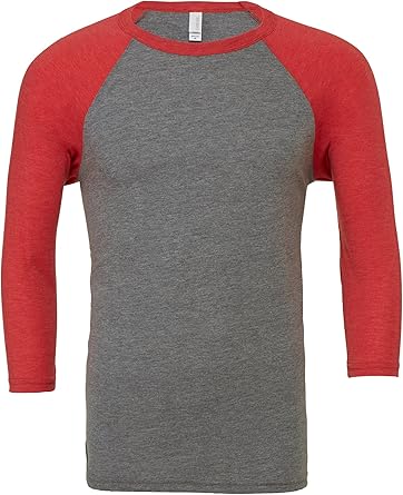 Canvas Unisex 3/4 Sleeve Baseball T red and gray baseball tee