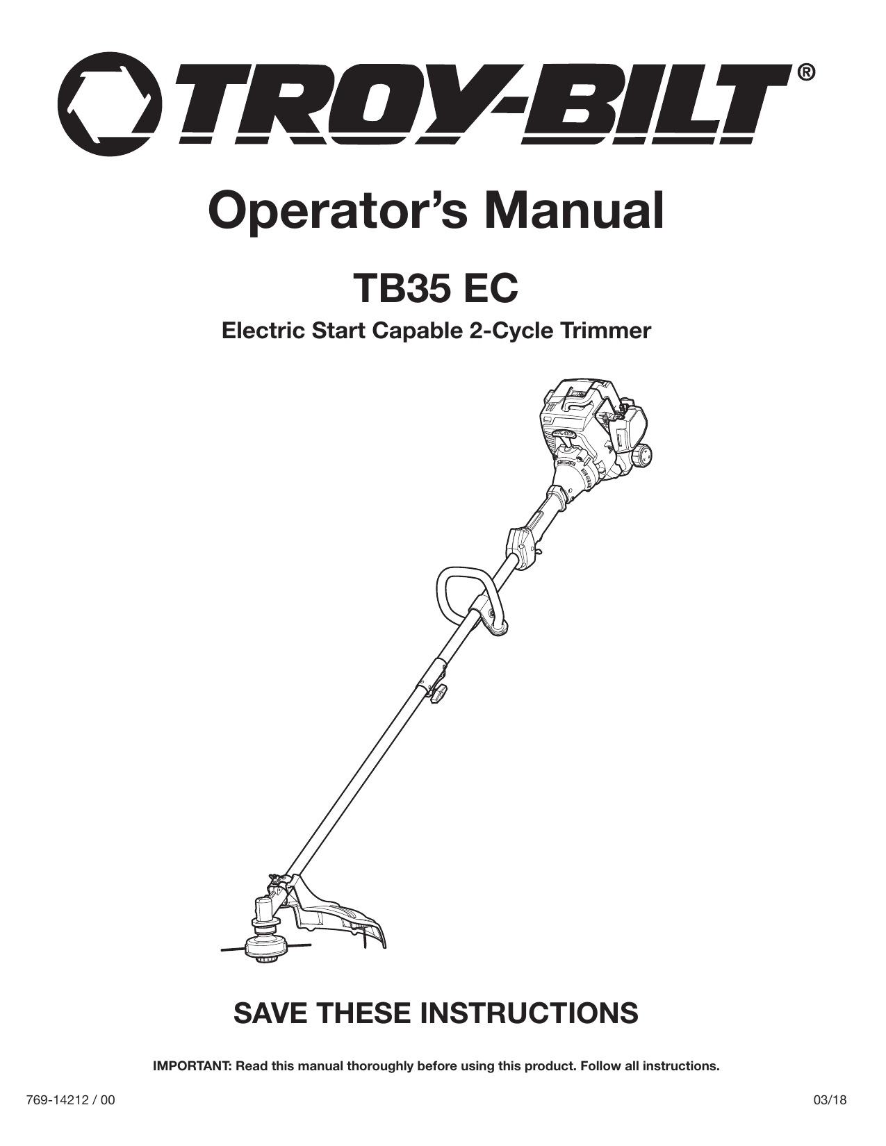Troy-Bilt TB35 EC, 41DDZ35C766 User troy bilt tb35ec accessories