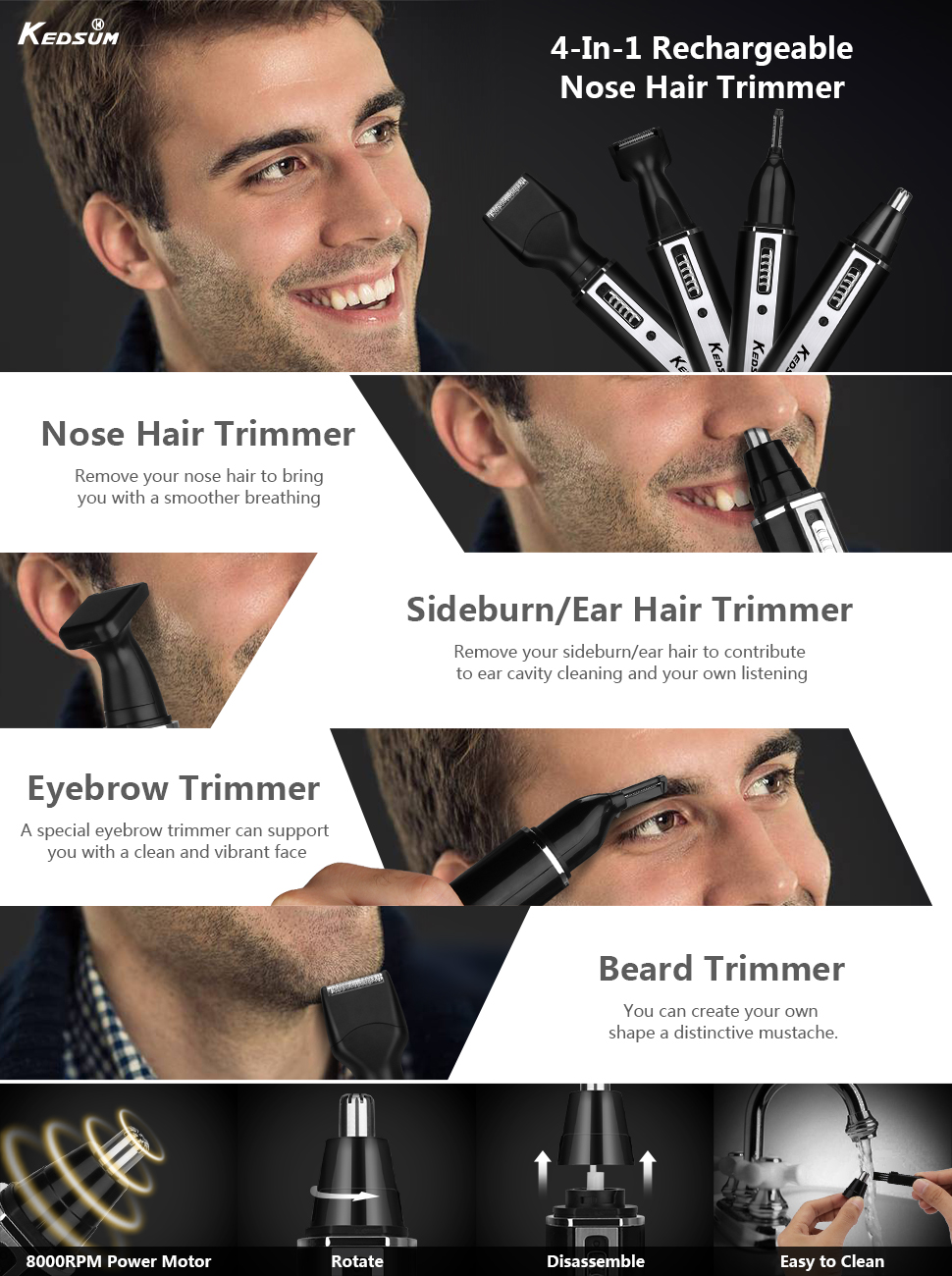 Rechargeable Nose Hair Trimmer-KEDSUM 4 kedsum nose trimmer