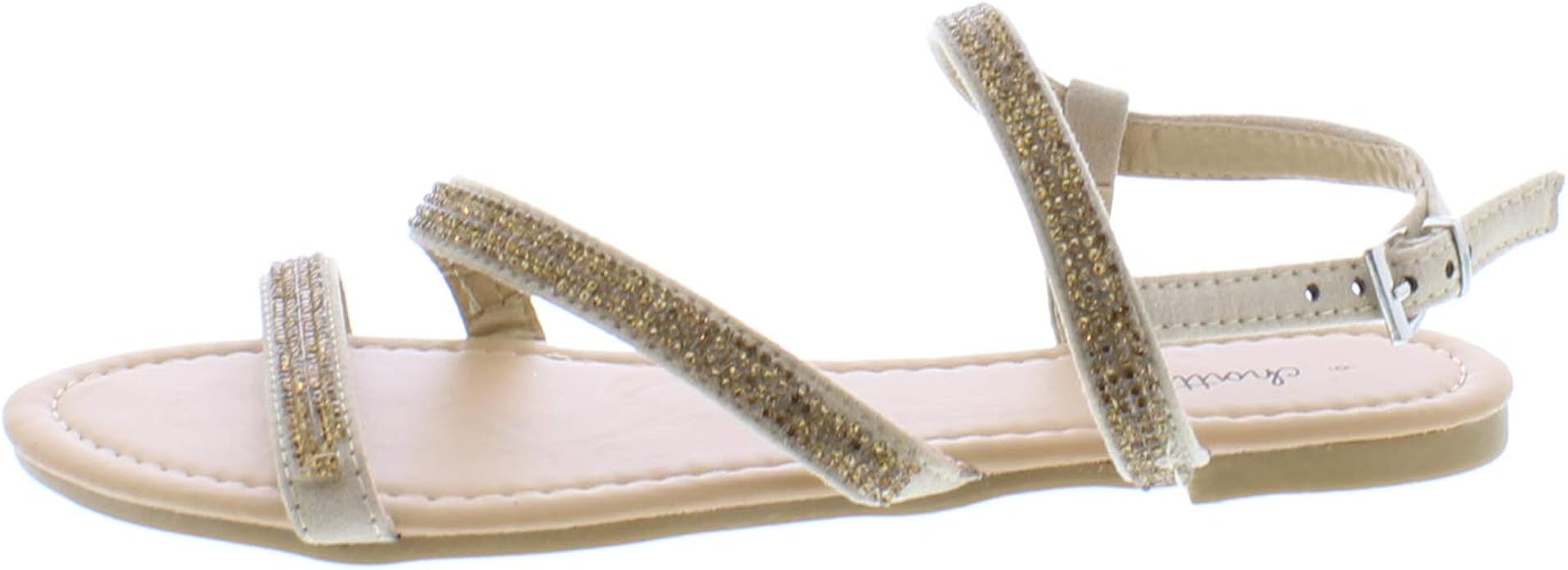 Microsuede Ankle Strap Sandal gold flat sandals size 11