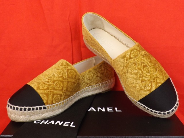 17a CHANEL Gold Velvet Camellia Flower chanel espadrilles sole