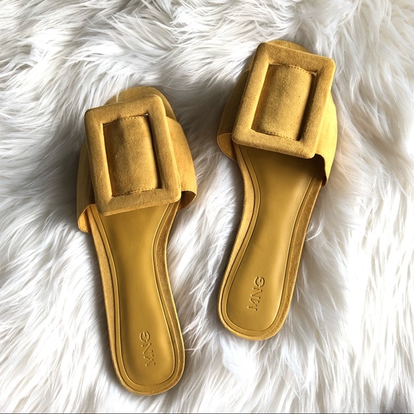 Yellow Buckle Flat Sandals Slides mango buckle flat sandals