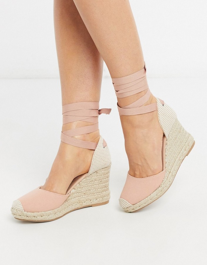 pink tie up wedges