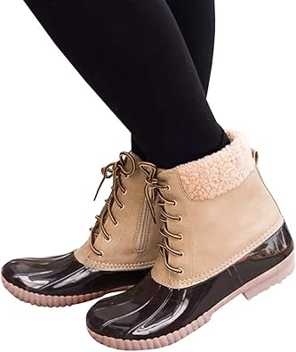 Women Ankle Duck Boot Two Tone Lace Up duck shoes amazon