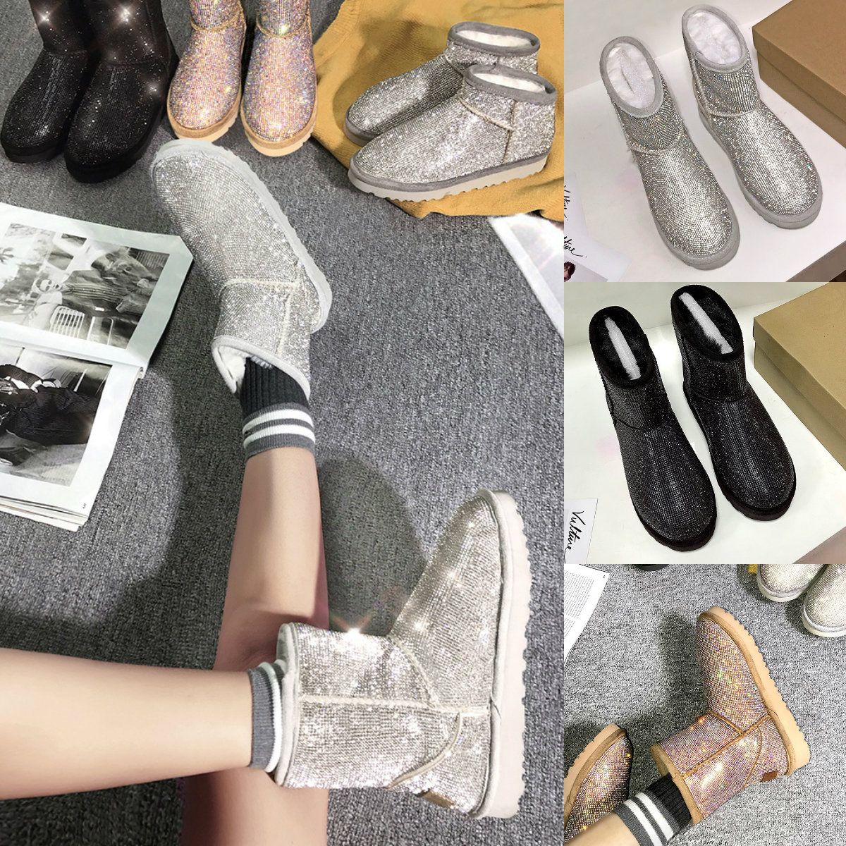 Womens Rhinestones Tassels Knitted best rhinestones for shoes