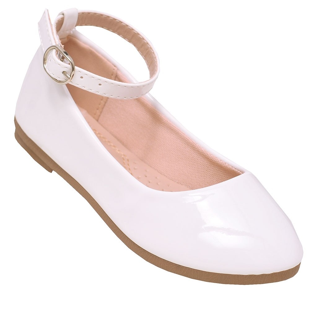 Shop Girls White Patent Shine Buckled flat shoes with strap around ankle