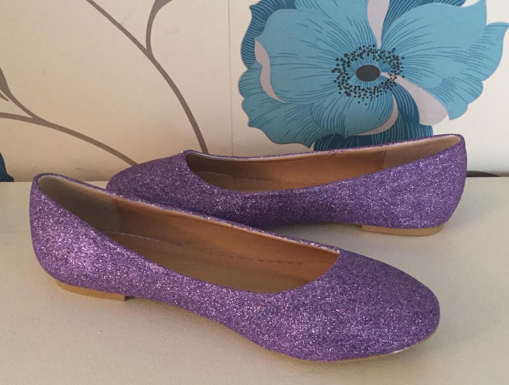Lavender Purple Glitter Flats Sparkly lavender shoes uk