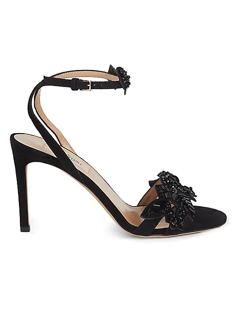 Valentino Black Suede and Embroidered valentino suede sandals