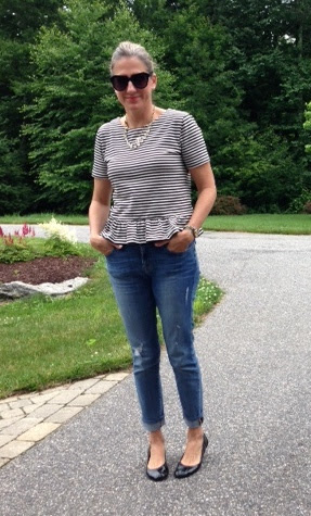 superchicmom: Peplum stripe top j crew factory edie loafer