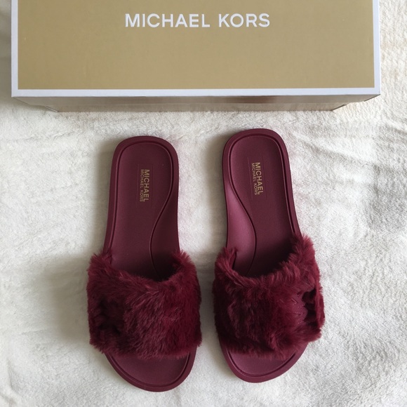 Michael Kors Mulberry Faux Fur Slide mk logo faux shearling slide