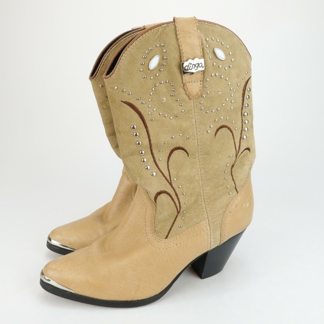 Dingo Tan Suede Leather Studded Cowboy dingo suede boots