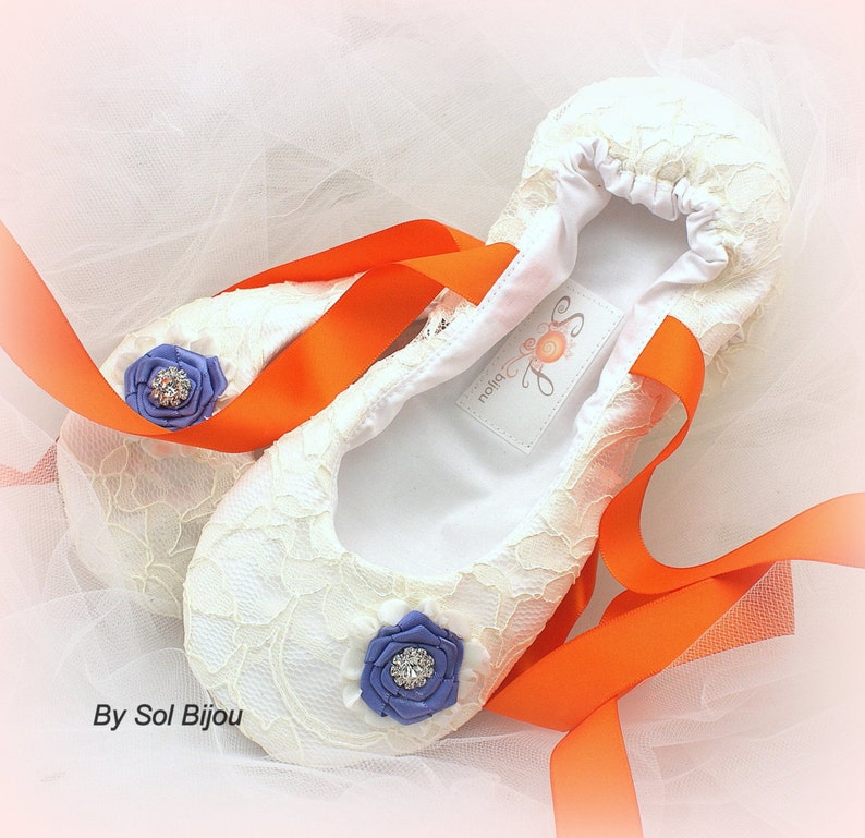 Ballet Flats Ivory Orange Periwinkle periwinkle shoes wedding