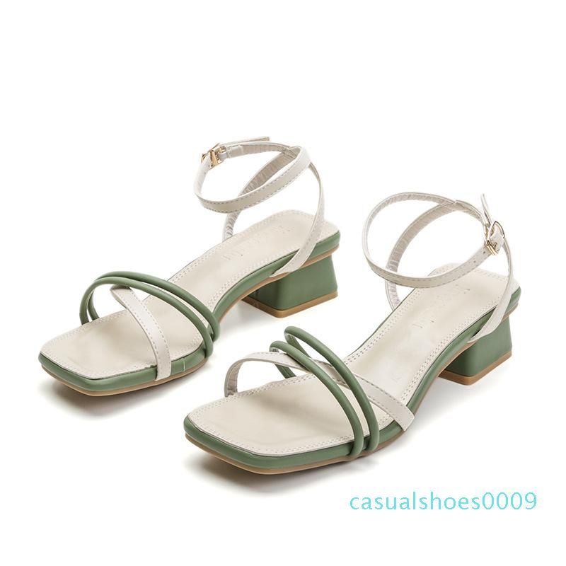 ONEYMM Women Summer Sandals Mid Heels leather summer shoes ladies