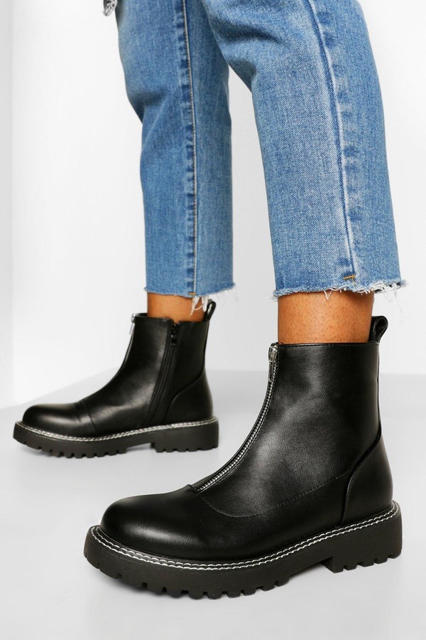 boohoo Double Stitch Detail Zip Front boohoo biker boots