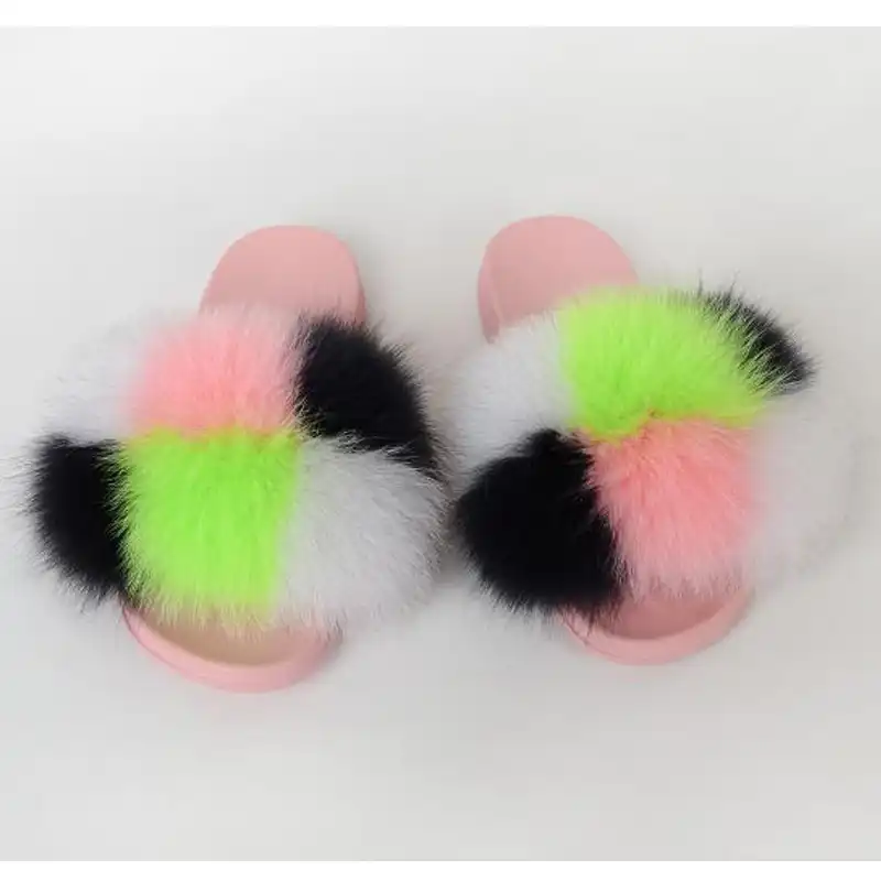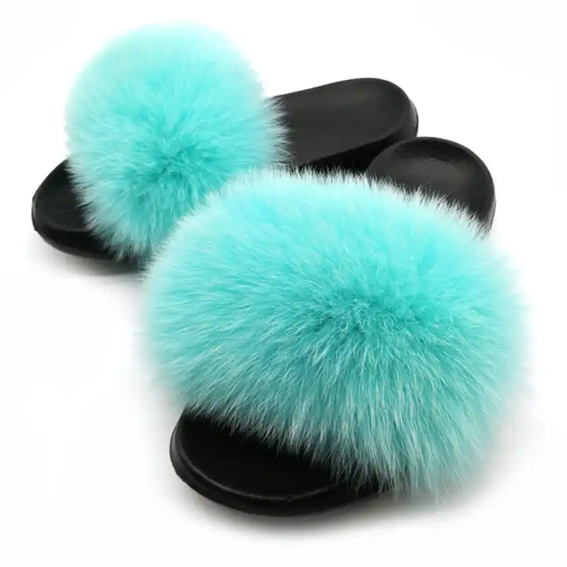 Fur Slippers Women Real Fox Fur Slides cute furry slides
