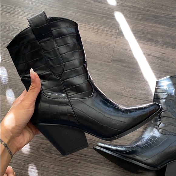Croc Pointed Cowboy Boots | boohoo