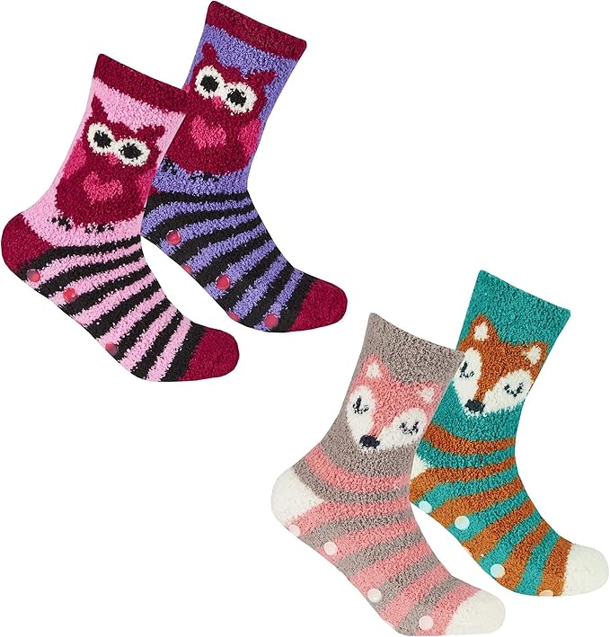 4 Pair Ladies Cosy Soft Fleece Non Slip amazon ladies slipper socks