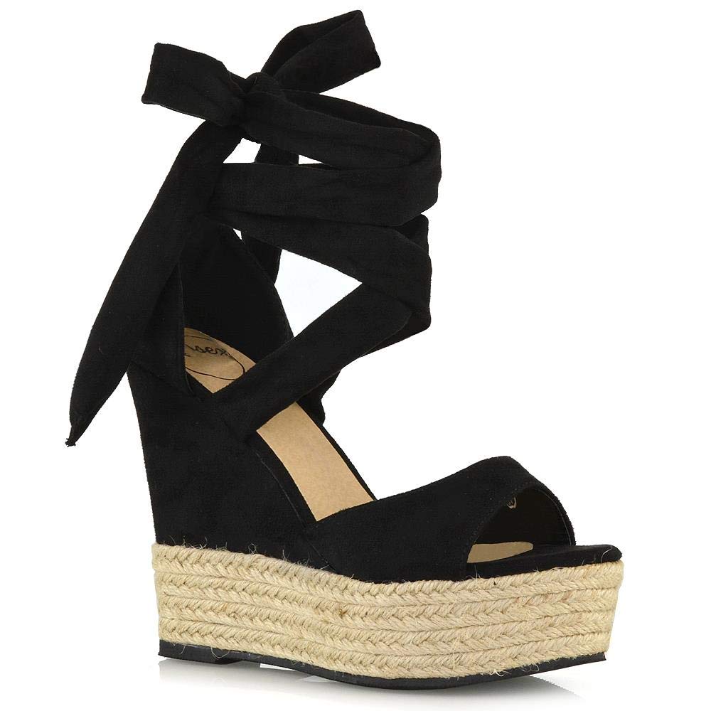 Womens High Wedge Heel Sandals Ladies ladies lace up espadrilles