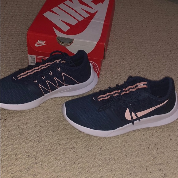 navy and pink nike shoes