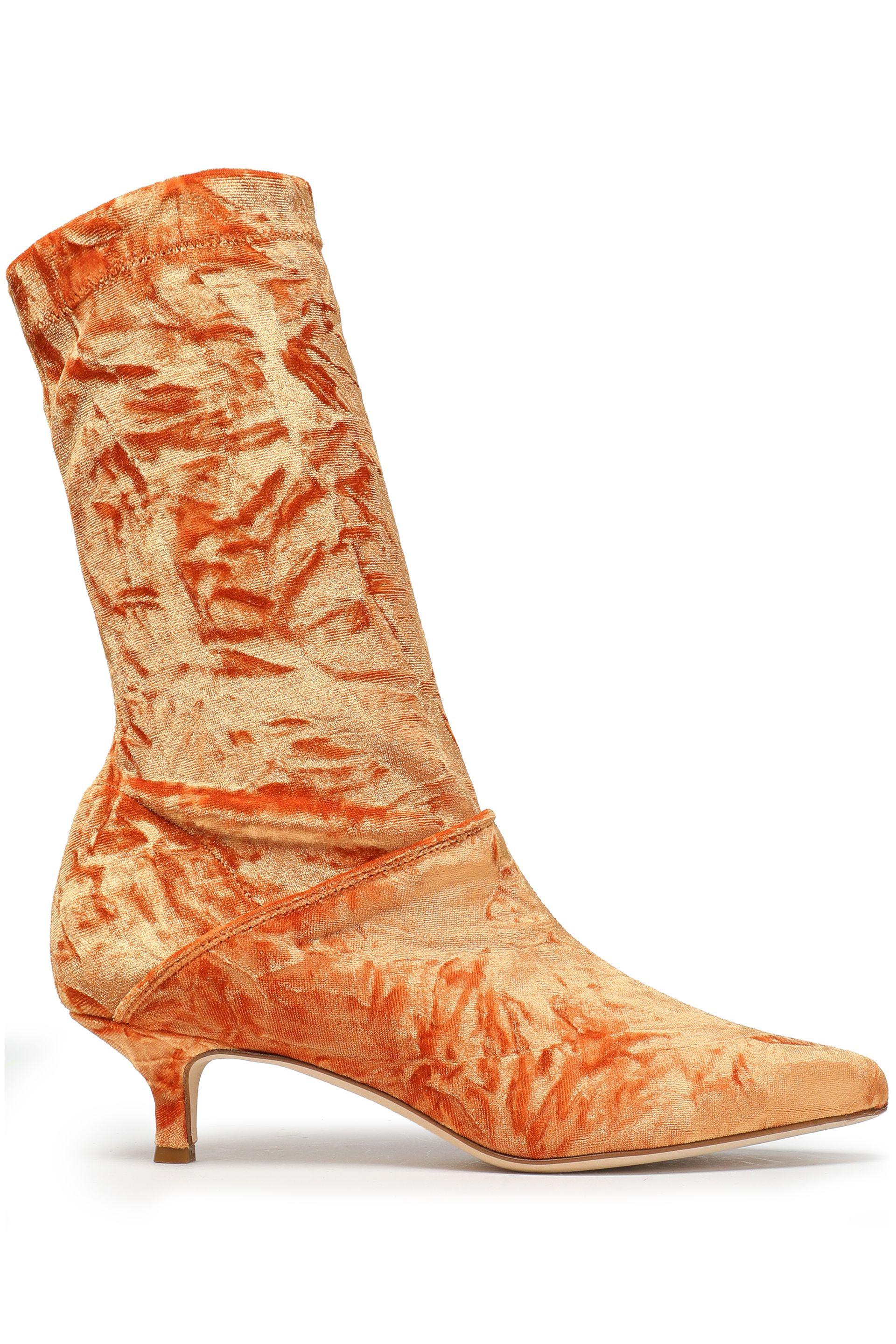 Harper Crushed-velvet Sock Boots orange velvet boots