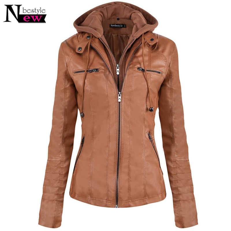 jaqueta de couro com touca de moletom feminina