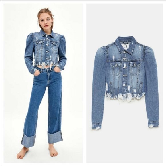 Zara Trf Crop Denim Puff Sleeve zara women's denim jacket with puff sleeves