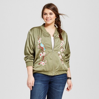 Women's Plus Size Embroidered Bomber xhilaration bomber jacket