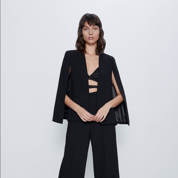 zara cape blazer black