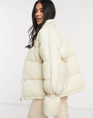 NA-KD short puffer jacket with elastic white short puffer jacket