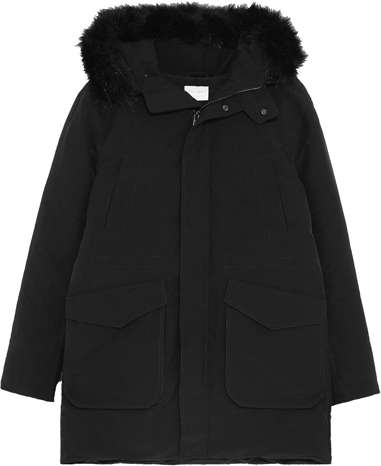 Zara Men Quilted Coat With Faux Fur zara men fur jacket
