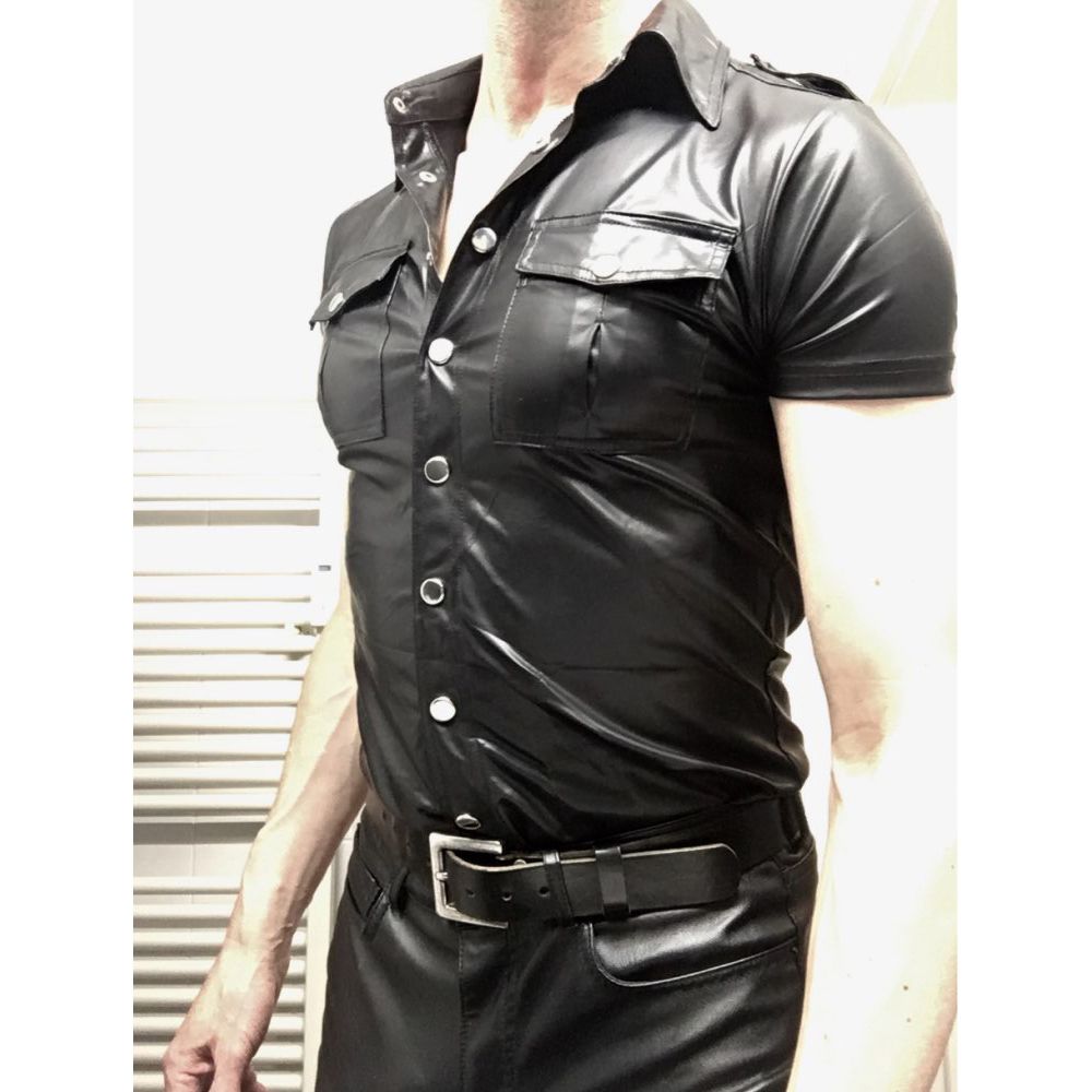 SHORT SLEEVE FAUX LEATHER SHIRT JACKET short sleeve faux leather jacket